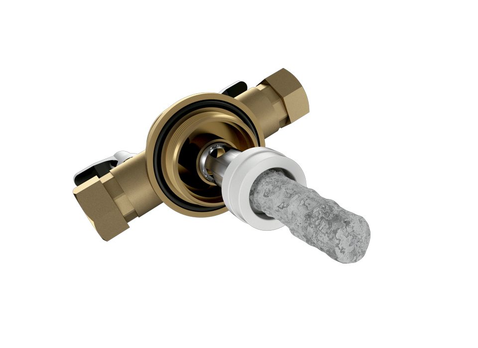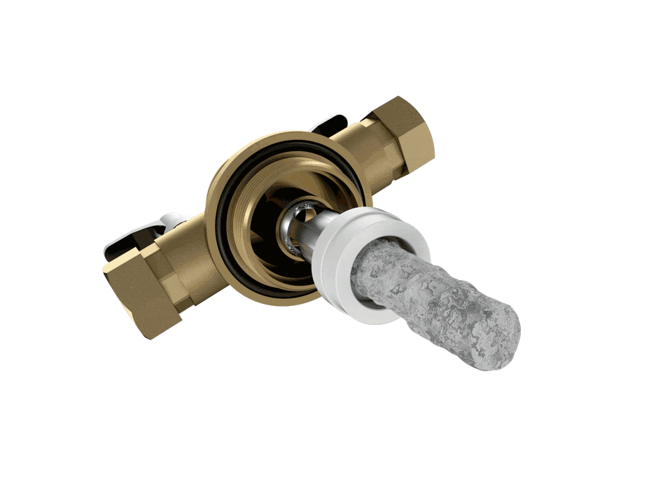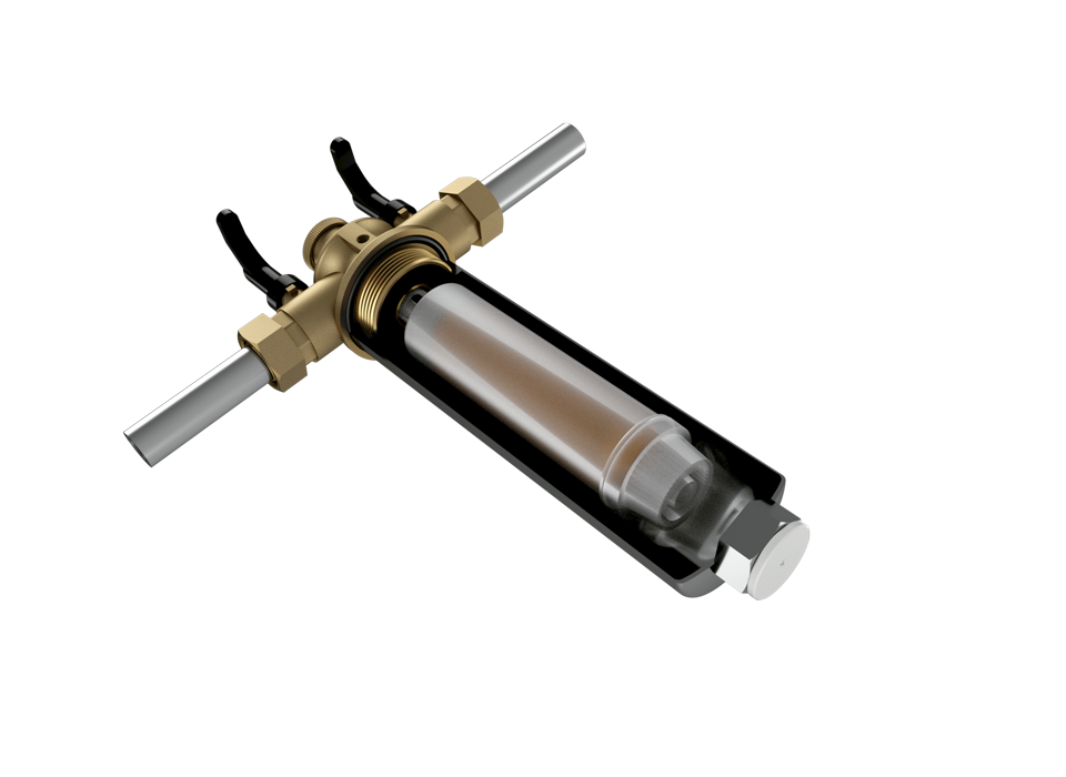Das Filtergehäuse aus Edelstahl trennt Rost und Schlamm aus dem Wasser, ohne zu verstopfen. Ein starker Magnet an der Unterseite des Gehäuses und die natürliche Schwerkraft, halten Rost und Schlammpartikel zurück. Integrierte Absperrventile ermöglichen ein bequemes Reinigen des Filters.